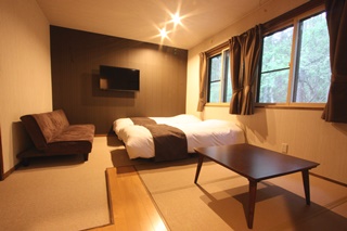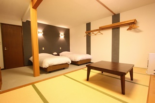 【和洋室(洗面・トイレ付) 2〜5名様】3部屋 ・ベッド2台+和式寝具3組(2階のお部屋) ・ベッド2台+和式寝具2組+ソファーベッド1台(1階のお部屋) どちらかのタイプとなります。 こちらで割り当てさせていただきますので、基本的にご希望に沿う事はできません。 (足の不自由な方はご予約時にご申告下さい。) ※床暖房を完備しております。 【和洋室(バス・トイレ付) 2〜5名様】1部屋 ※3名様以上でご利用の場合、和式寝具をご用意させていただきます。 2階のお部屋です。 ※FF式ファンヒーターを完備しております。 |